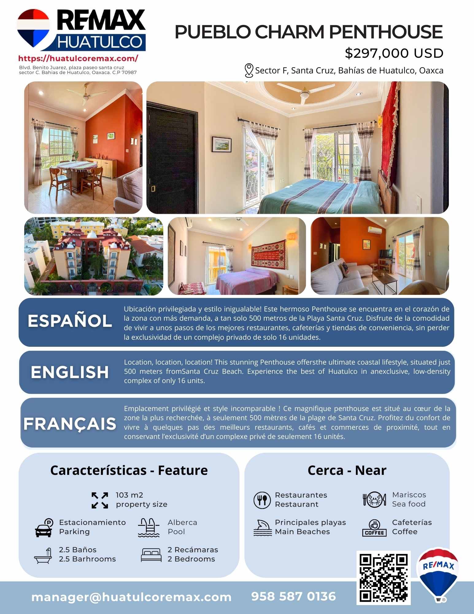 Location, location, location! This stunning Penthouse offers the ultimate coastal lifestyle, situated just 500 meters from Santa Cruz Beach. Experience the best of Huatulco in an exclusive, low-density complex of only 16 units.